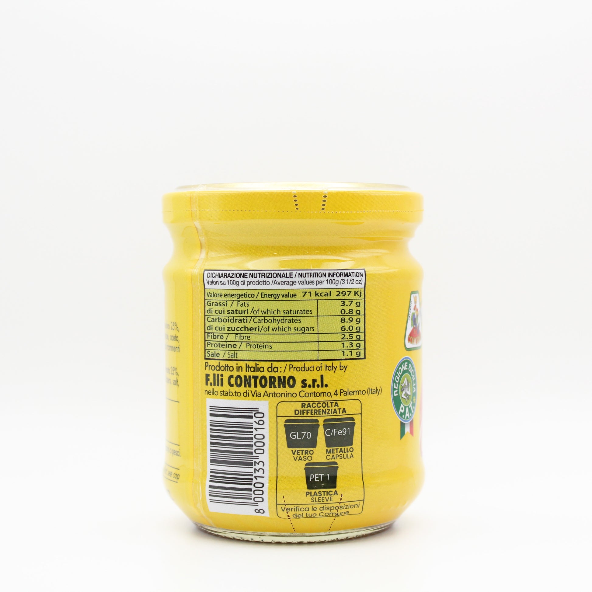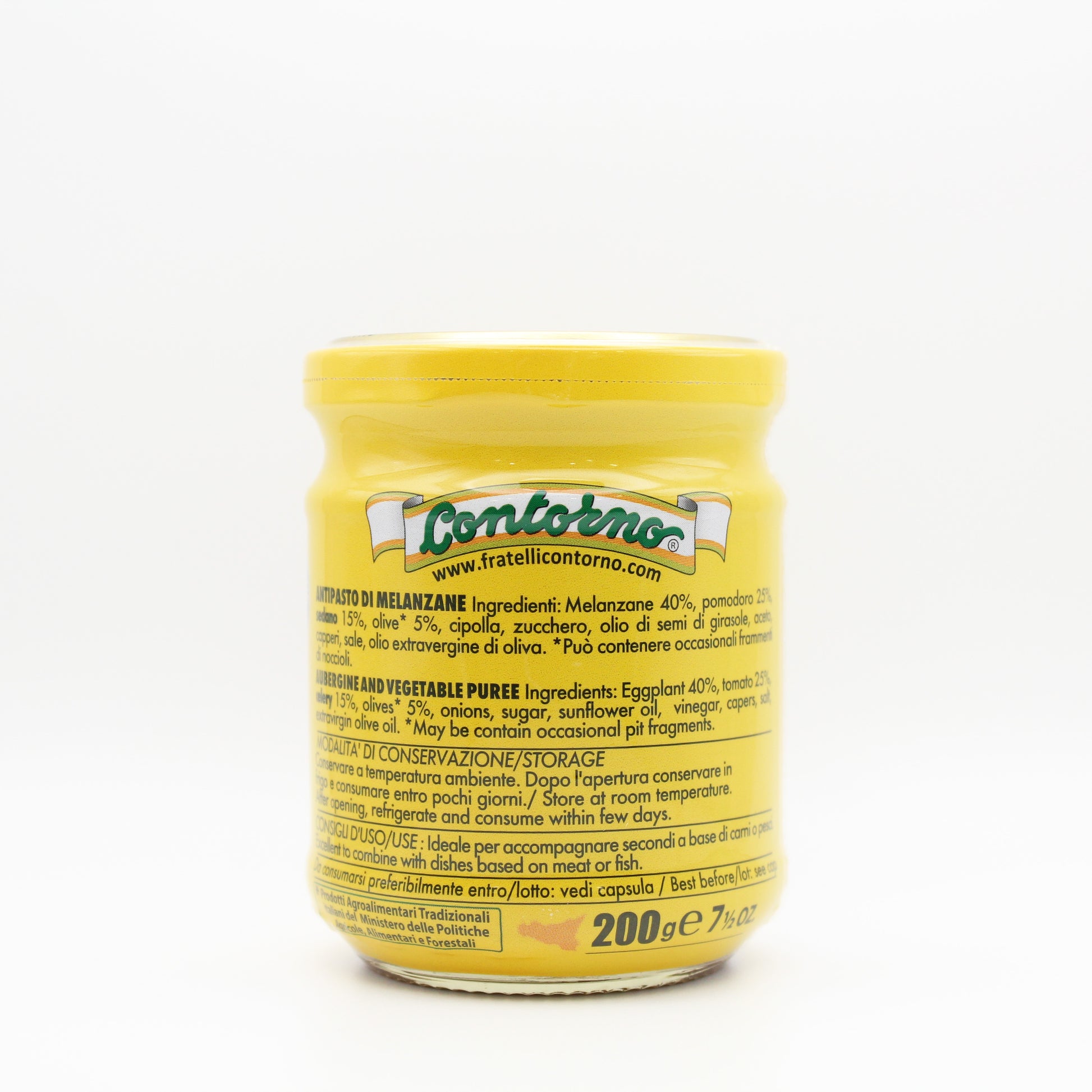 Ingredienti: Melenzana 40%, pomodoro 25%, sedano 15%, olive 5%, cipolla, zucchero, olio di semi di girasole, aceto, capperi, sale, olio extra vergine di oliva.
