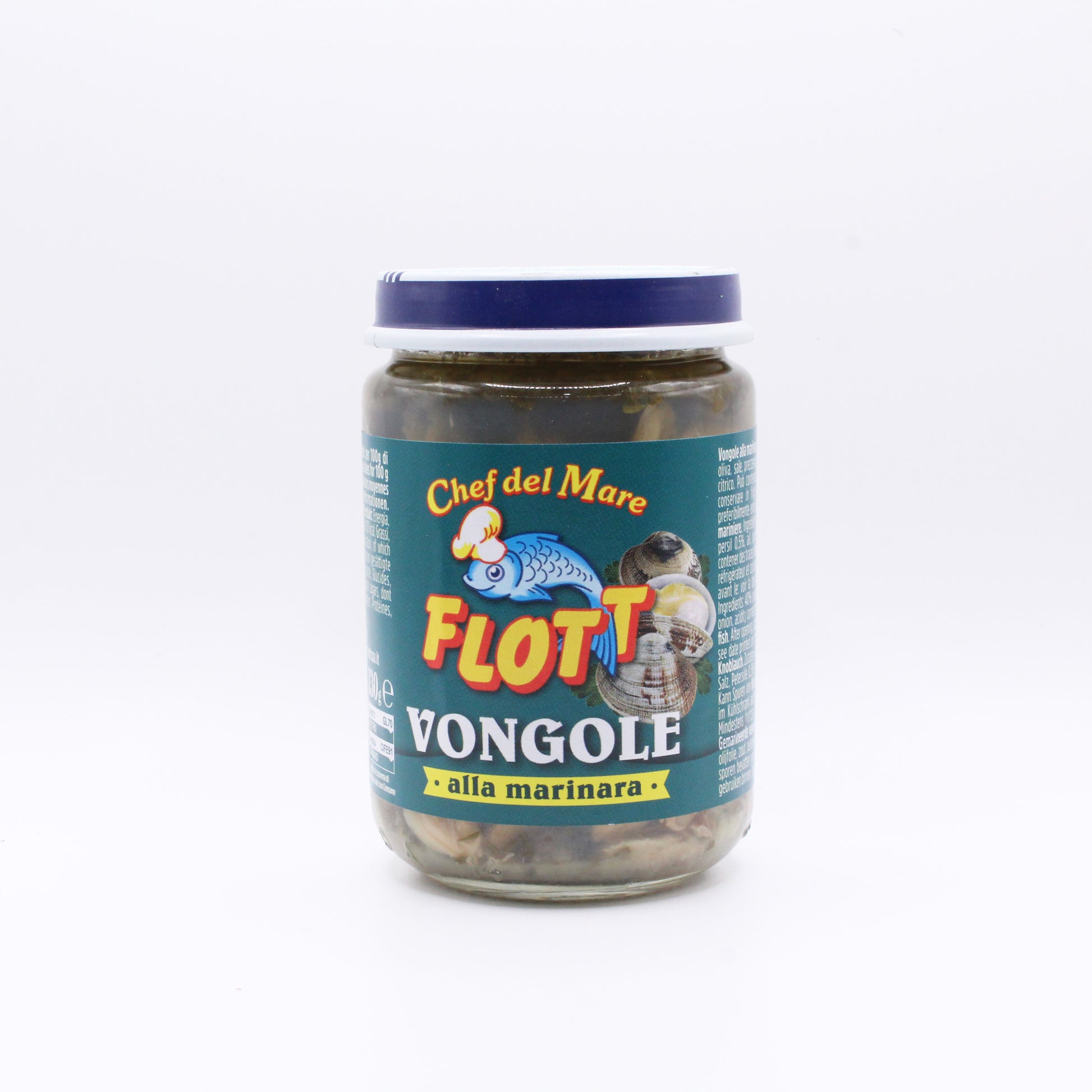 Ingredienti: Vongole sgusciate 40g, acqua, olio di oliva, sale, prezzemolo 0,5%, aglio, cipolle, correttore di acidità: acido citrico.